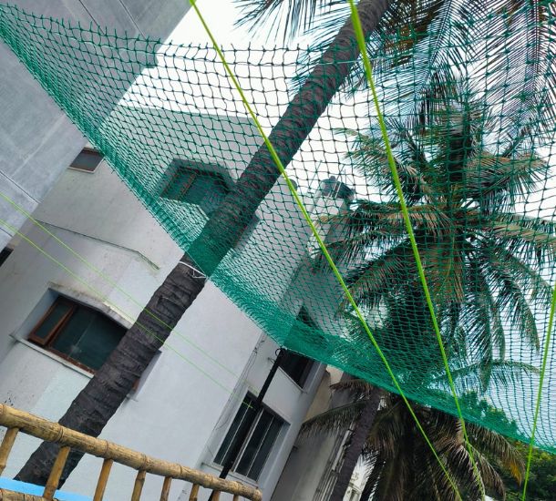 DE Safety Nets provides strong coconut tree safety nets, preventing injuries and property damage from falling coconuts. These durable nets ensure safety and peace of mind for residents in Bangalore.