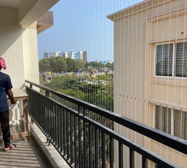 DE Safety Nets offers durable, high-quality balcony safety nets to protect children, pets, and elderly from accidental falls. Ensuring safety while maintaining aesthetics in Bangalore homes.